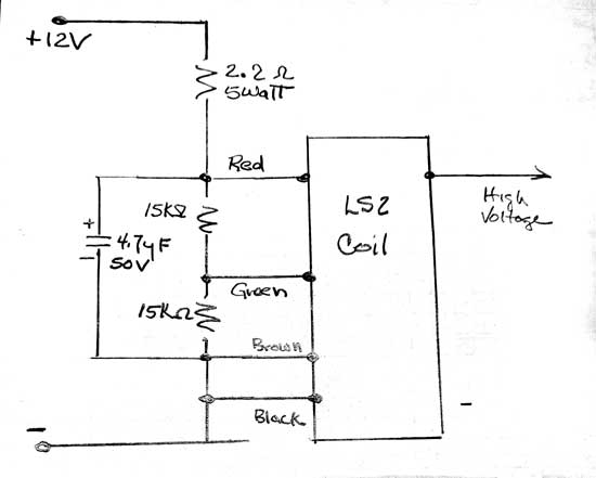 Another approach uses a coil on plug design. These coils are used in modern cars. Instead of having one coil for all the cylinders, each cylinder has its own spark coil. I have not tried this but it appears to be simpler and have a much greater spark rate and a larger spark. Here is a circuit diagram and picture of one of these systems. This looks much better in my opinion and I will build one to experiment with. The write-up doesn’t say exactly how but I assume the spark pulse is generated as long as power is applied to the circuit.