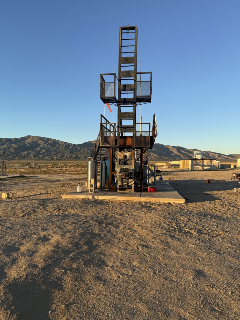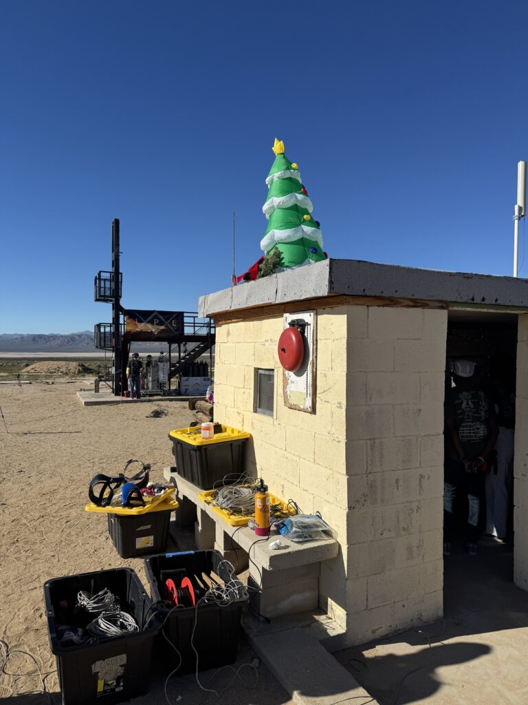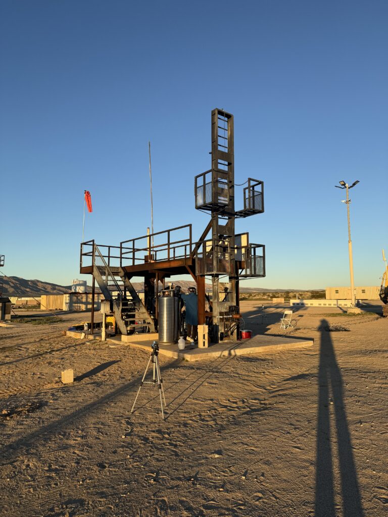 The University of Southern California’s Liquid Propulsion Laboratory (USC LPL) had a static firing event at the RRS Mojave Test Area (MTA) on Saturday, December 6, 2022. I was the Rockets Class 1 pyrotechnic operator in charge for this set of liquid engine static firing operations. By appointment, the USC LPL team arrived on the Friday before and leak check operations were overseen by Osvaldo Tarditti, who was the pyro-op in charge for that previous day. My colleague, Mark Ferguson, joined me during that day to help oversee operations and learn more about the changes at the MTA. Mark is a returning member to the society and has professional rocketry experience.