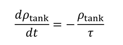 Equation 10 gives the rate of mass loss from a tank at a given gas density and temperature. To determine how long it will take to depressurize the tank, we must do a transient mass balance on the tank. The ordinary differential equation for this is: