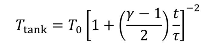 Assume the gas cools as it expands in the tank, due to no heat transfer from the walls, based on the blowdown taking a short time to complete. Thus, T_tank is given by Equation 4A. This leads to Equation 20 becoming